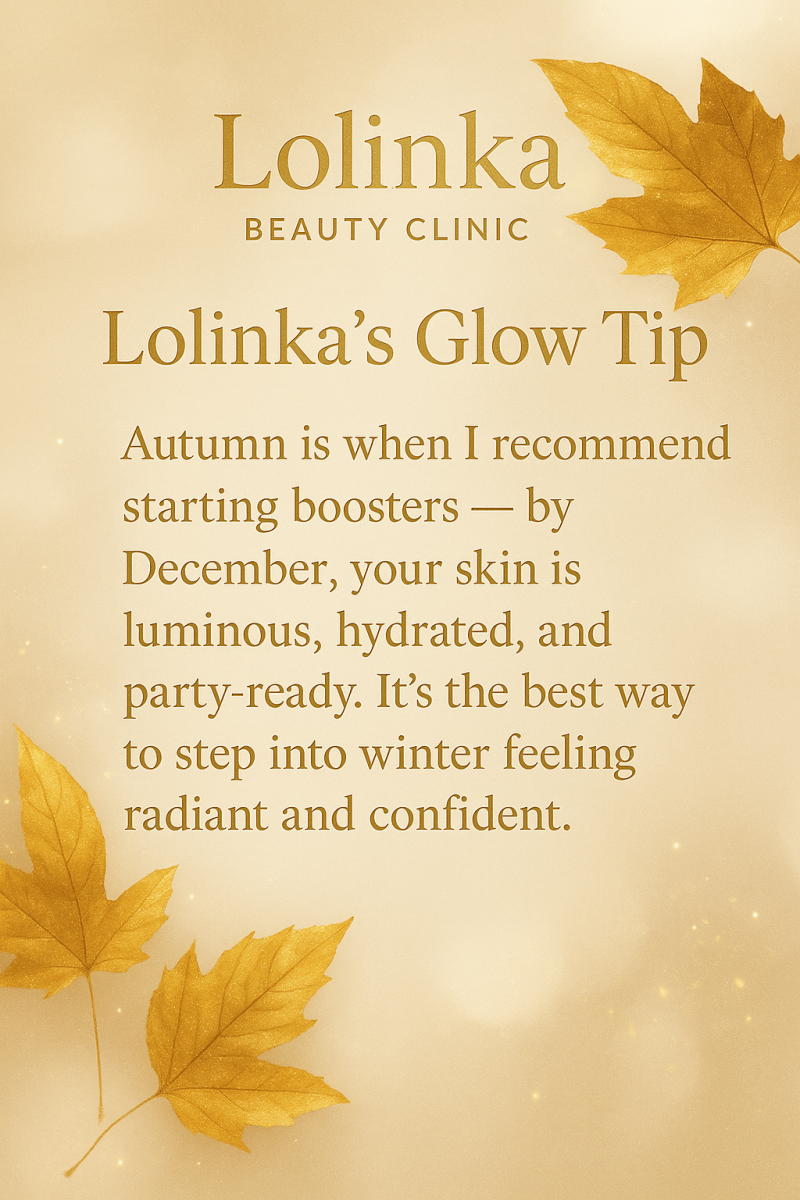 “Autumn is when I recommend starting boosters — by December, your skin is luminous, hydrated, and party-ready. It’s the best way to step into winter feeling radiant and confident.”